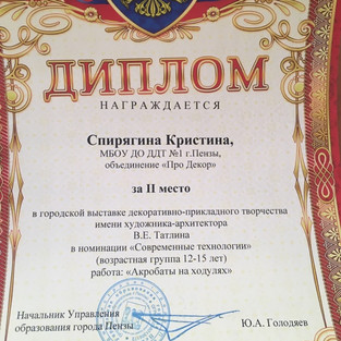 Работы, занявшие призовые места, будут представлены в феврале т.г. на зональном этапе областной выставки-ярмарки декоративно-прикладного творчества «Мастерград юных», посвященной 80-летию образования Пензенской области.